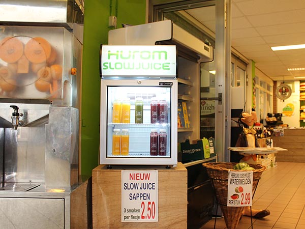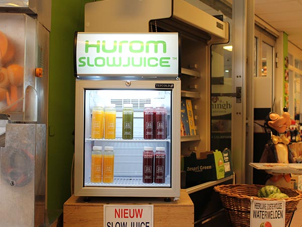 Door middel van cross-promotie (Hurom Slowjuice en uw bedrijf), maken wij samen het door u geperste sap bekend in uw omgeving. Dit doen wij door middel van het leveren van flesjes, een flyer met informatie over slowjuice en gezond eten. Verder is het mogelijk om (optioneel) een mini koelkast bij te bestellen. Hieronder vindt u meer informatie over het promotiemateriaal.Promotiemateriaal